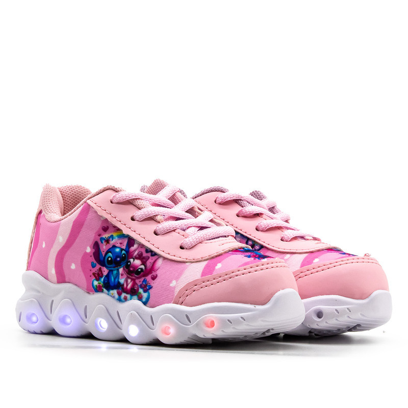 Tênis Led Infantil Menina Stitch Rosa Feminino Led Luz Colorido Pisou Piscou Super Confortável Lançamento