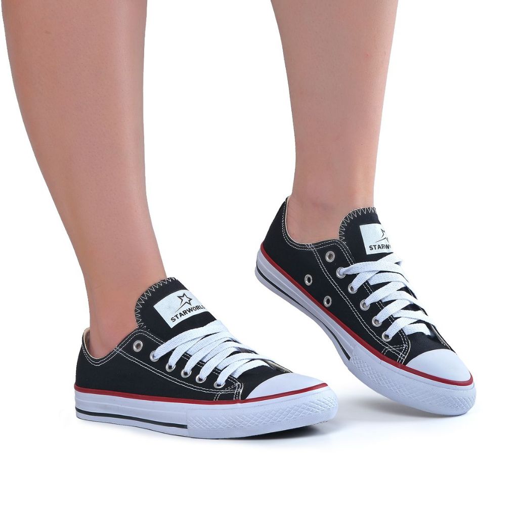 Tênis Lona Branco Preto Unissex Star world All Estilo Casual Confortável integra a oferta da Shopee Brasil na subcategoria Tênis (de Sapatos Femininos) por R$ 69,90. Com avaliação de 4.9 de 5 estrelas e 214 unidades vendidas, este produto se destaca pelo excelente custo-benefício.