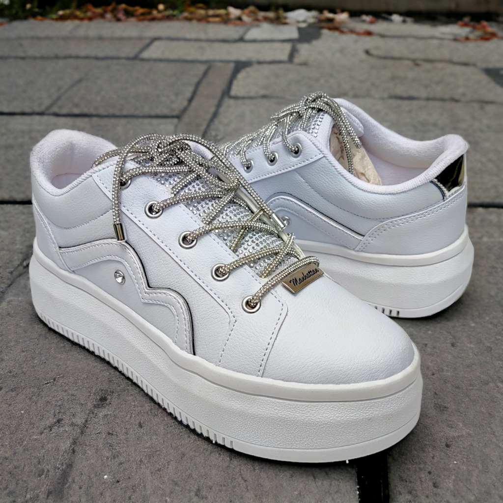 Tênis Manhattan Strass Feminino Adulto Plataforma Salto Alto Confortável De Mulher Sapato Brilhante