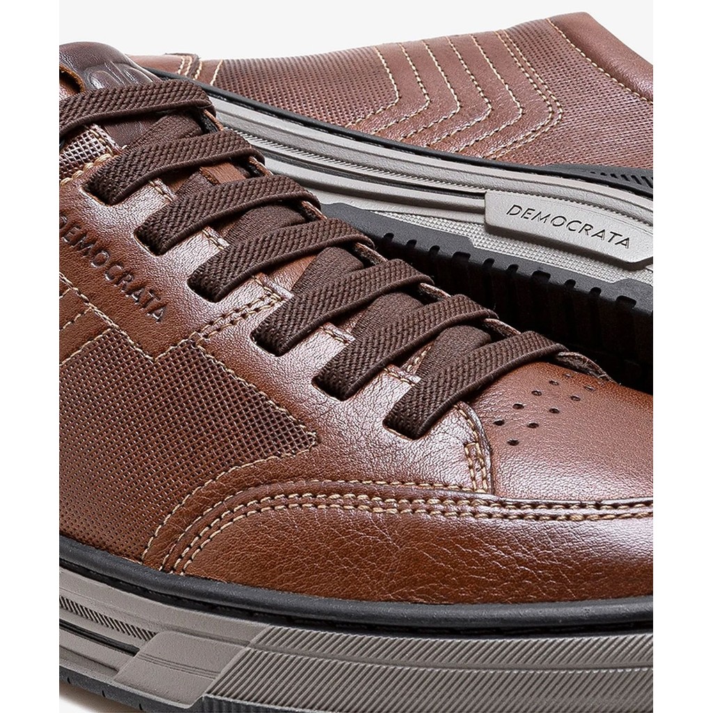 Tênis Masculino Democrata Denim Dylan Couro Conhaque