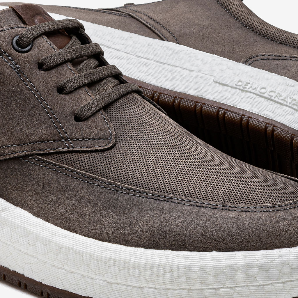O Tênis de couro Marrom Denim Drake Pulse é um produto confortável e leve. Confeccionado em couro na cor marrom, fechamento cadarço de elástico, contém detalhes perfurado e em pesponto no couro. O bico é arredondado e a palmilha é feita de P.U. Possui detalhe da logo da marca no calcanhar. O solado é feito de ETPU, garantindo leveza e conforto. Este modelo contém a tecnologia Pulse. Material: Couro Solado: ETPU Fechamento: Elástico Estilo: Casual Altura do Salto: 4cm
