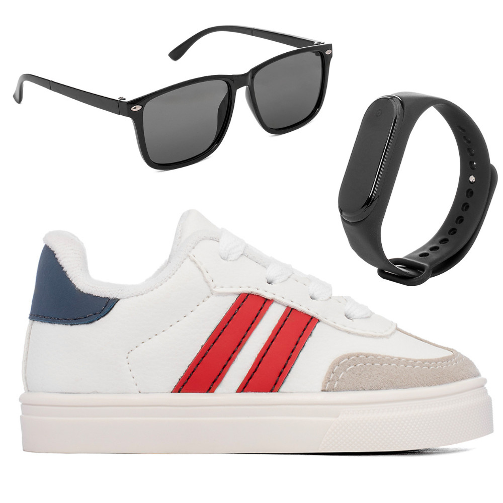 ***** AVISOS DA FUNFY ***** COMPONENTES DO KIT: 1 ÓCULOS DE COR SORTIDA DE ACORDO COM NOSSO ESTOQUE; 1 RELÓGIO DE COR SORTIDA DE ACORDO COM NOSSO ESTOQUE; 1 TÊNIS INFANTIL MASCULINO NA COR ESCOLHIDA. - EM CASO DE DEVOLUÇÃO, SÓ ACEITAMOS O KIT COMPLETO. NÃO É POSSÍVEL TROCAR OU DEVOLVER APENAS UM ITEM DO KIT. Kit Tênis Infantil mais oculos e relogio Um lindo KIT desenvolvido com cores alegres para deixar o dia do seu pequeno ainda mais especial. O solado de borracha proporciona segurança e conforto para os pezinhos, enquanto a palmilha em EVA garante maciez e absorção de impactos. O material sintético do cabedal é resistente e fácil de limpar. Com um design casual e leve, esse tênis é perfeito para o dia a dia dos meninos. Garanta já o conforto e alegria para os pés do seu principe! Embalado em uma prática caixa unitária para maior proteção do produto. A Funfy Kids é a loja ideal para você encontrar calçados infantis de alta qualidade. Especificações Detalhes Modelo Tênis Infantil Casual Material Externo Tecido Sintético Material Interno Têxtil Solado Borracha TR Antiderrapante Detalhes Recortes em Cores Fecho Cadarço Gênero Masculino Indicação Casual, Dia a Dia, Festas Características Leve, Confortável, Resistente Embalagem Caixa Ecológica Marca Funfy