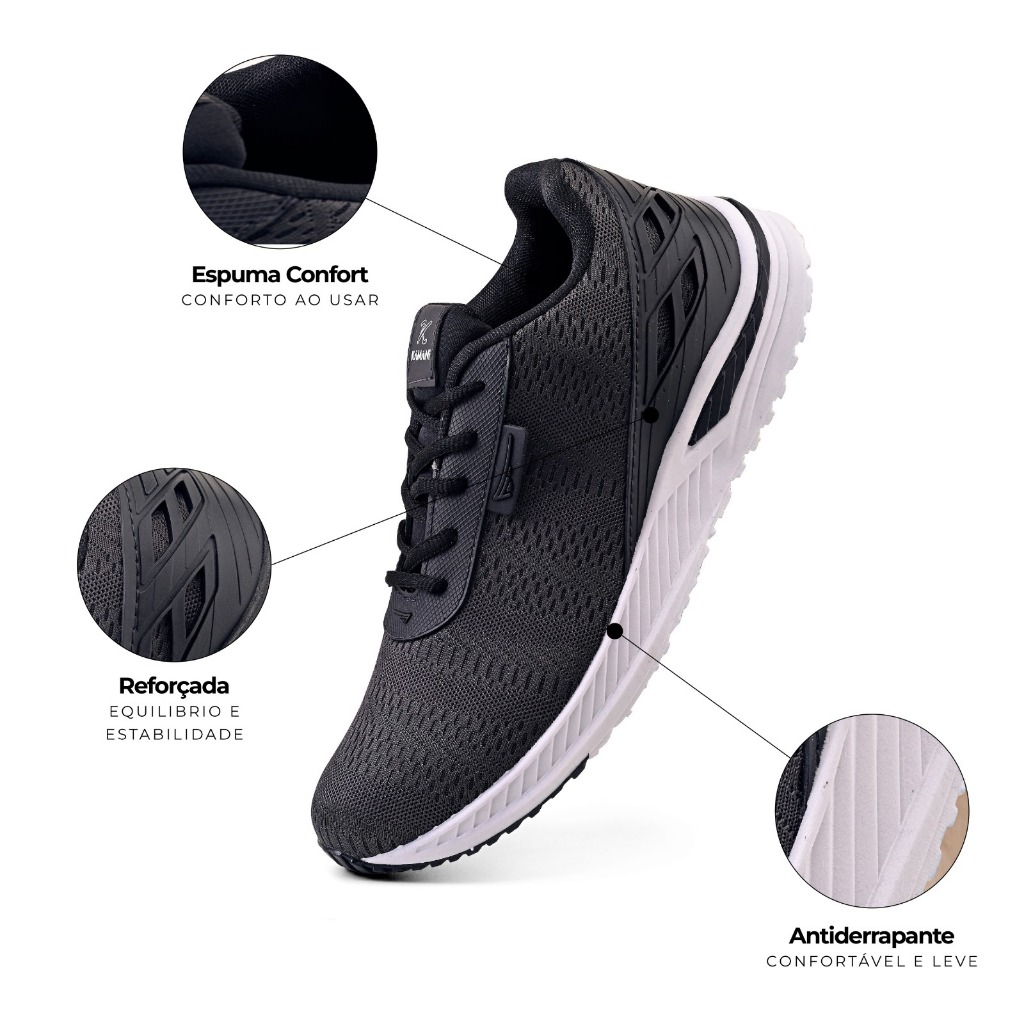 🔥Conheça o melhor tênis para uso no seu dia a dia e também para a prática de esportes. 🔥Confira a opinião de quem já comprou nos comentários logo abaixo dessa descrição. 🌟Procura um tênis que ofereça conforto e segurança para uso no dia a dia e também em atividades físicas? Nosso Tênis Masculino Original Kamani é a escolha perfeita para quem busca qualidade e desempenho! 👟 Design ortopédico que garante estabilidade e suporte adequado aos seus pés, ajudando a prevenir lesões e desconfortos durante a prática esportiva. ✨ Material macio e leve que proporciona uma sensação de conforto durante todo o uso, permitindo que você se mova com liberdade e sem fadiga. 🛡️ Sola antiderrapante que oferece maior segurança, mesmo em superfícies escorregadias, garantindo estabilidade e confiança a cada passo. 🔝 Feito com materiais originais de alta qualidade, o tênis é resistente ao uso diário, mantendo sua performance por muito mais tempo. 🏃♀️ Seja na academia, na caminhada ou na rotina diária, ele oferece o suporte necessário para você alcançar seus objetivos com segurança e conforto. Invista em um produto que une praticidade, segurança e bem-estar. Garanta já o seu Tênis Feminino Original e sinta a diferença na sua performance e conforto! Medida da Palmilha: 👟Numeração: 👟Tamanho da palmilha: 34 23 cm 35 23,7 cm 36 24,3 cm 37 25 cm 38 25,7 cm 39 26,3 cm 40 27 cm 41 27,7 cm 42 28,3 cm 43 29 cm ESPECIFICAÇÕES TÉCNICAS Benefícios: Leveza Categoria: Caminhada Estilo: Esporte Fecho: Amarração Garantia do fornecedor: Contra defeitos de fabricação Indicado para: Dia a Dia Material Externo : Sintético Material Interno: Têxtil Modalidade de Esporte: Fitness/Academia Ocasião de Uso: Esporte Pisada: Neutra Garantia do vendedor: 30 dias Dúvidas: Chame no Chat.