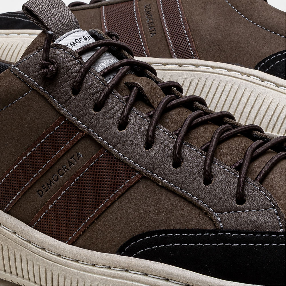 Tênis Masculino Vibe Couro Marrom Preto