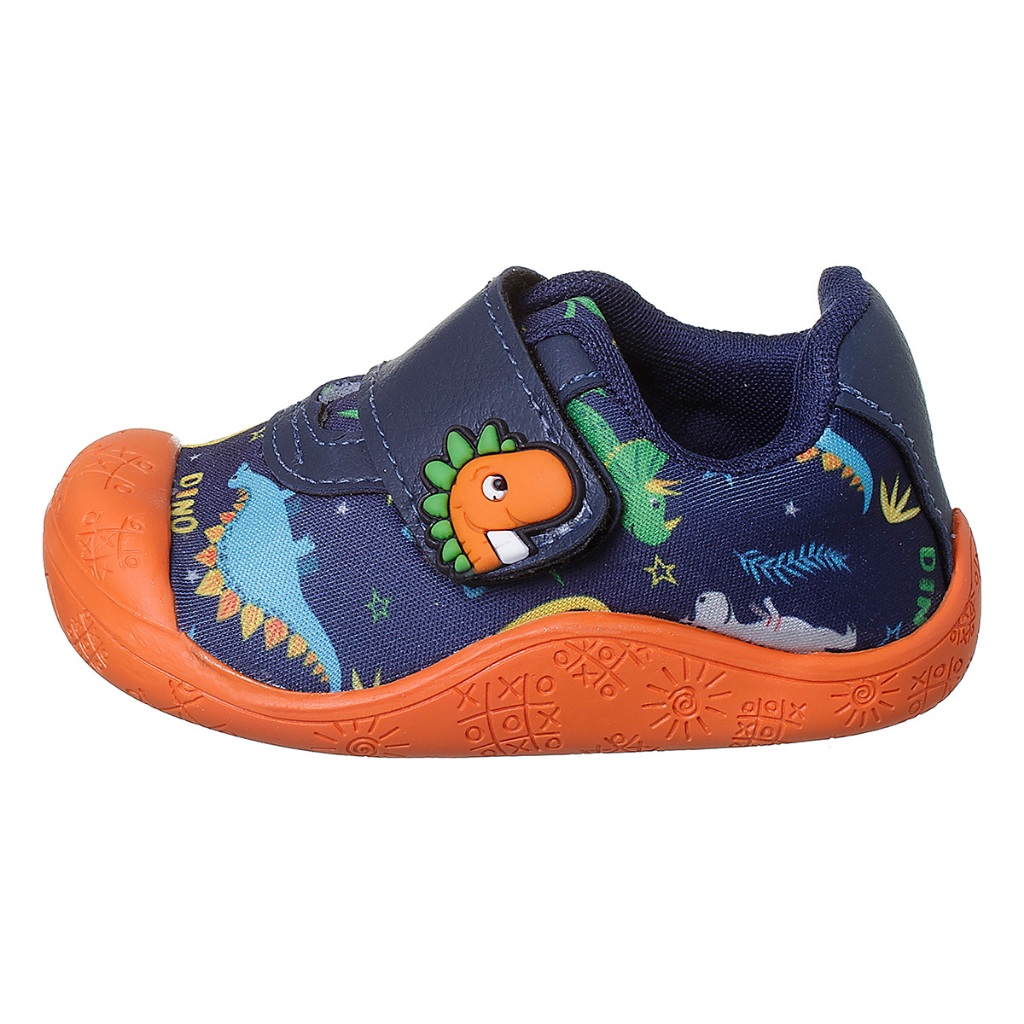 Tênis Meia Bebê Menino Sola Antiderrapante Dinossauro Marinho com Laranja Kidstep