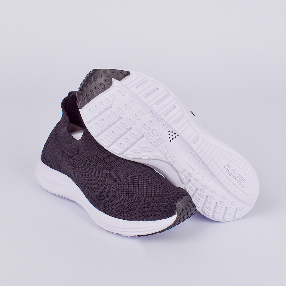 Tênis Meia Infantil Juvenil Kidy Energy Preto Branco Leve Confortável Respitec Calce Fácil
