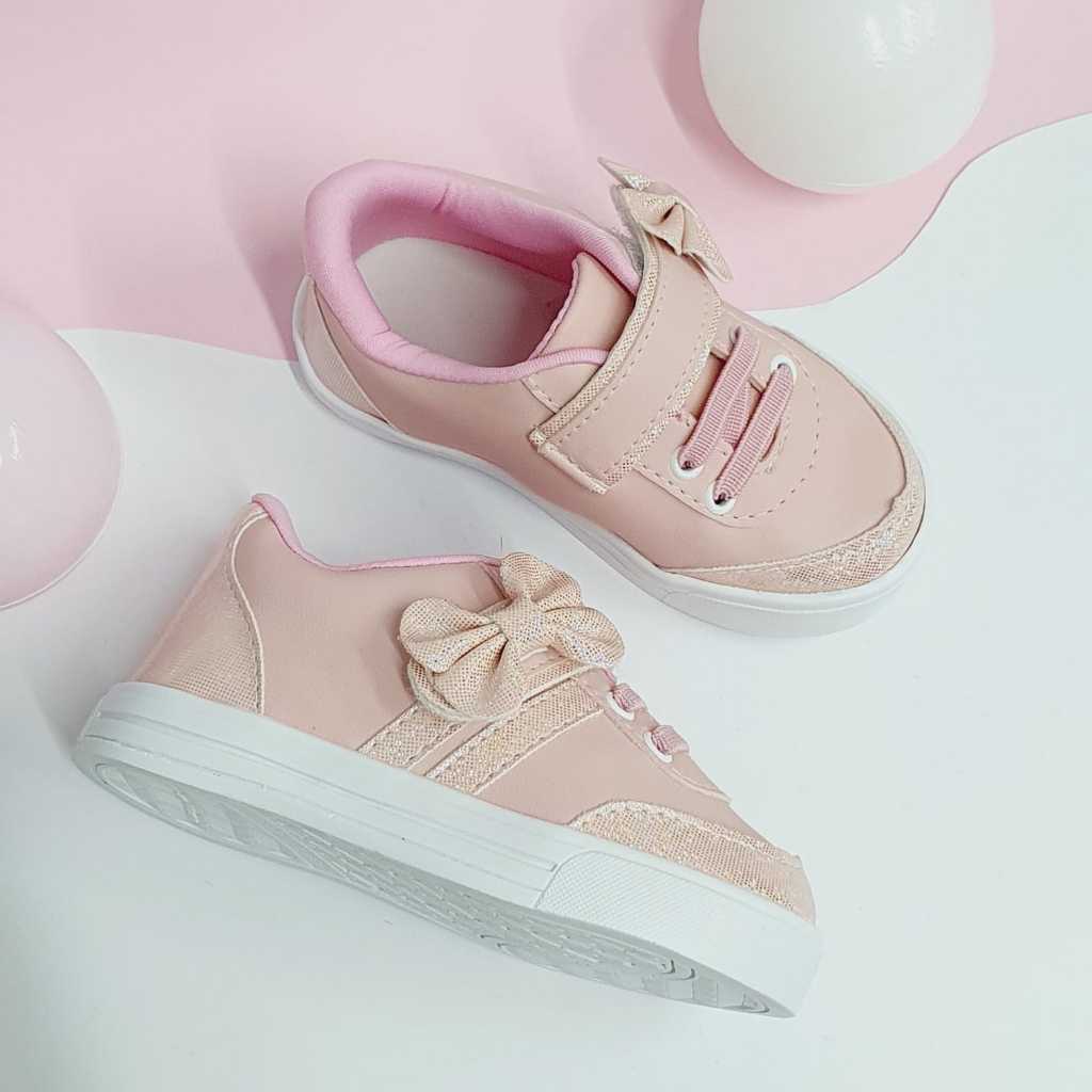 Tênis Menina Infantil Lacinho Gliter Casual Confortável Velcro Feminino