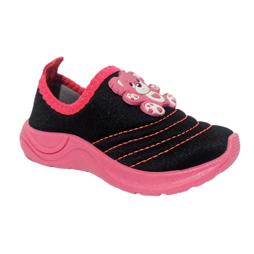 Tênis menina Slip On Barato Casual Personagens emborrachado bordado ursinho rosa pink sola antiderrapante macia