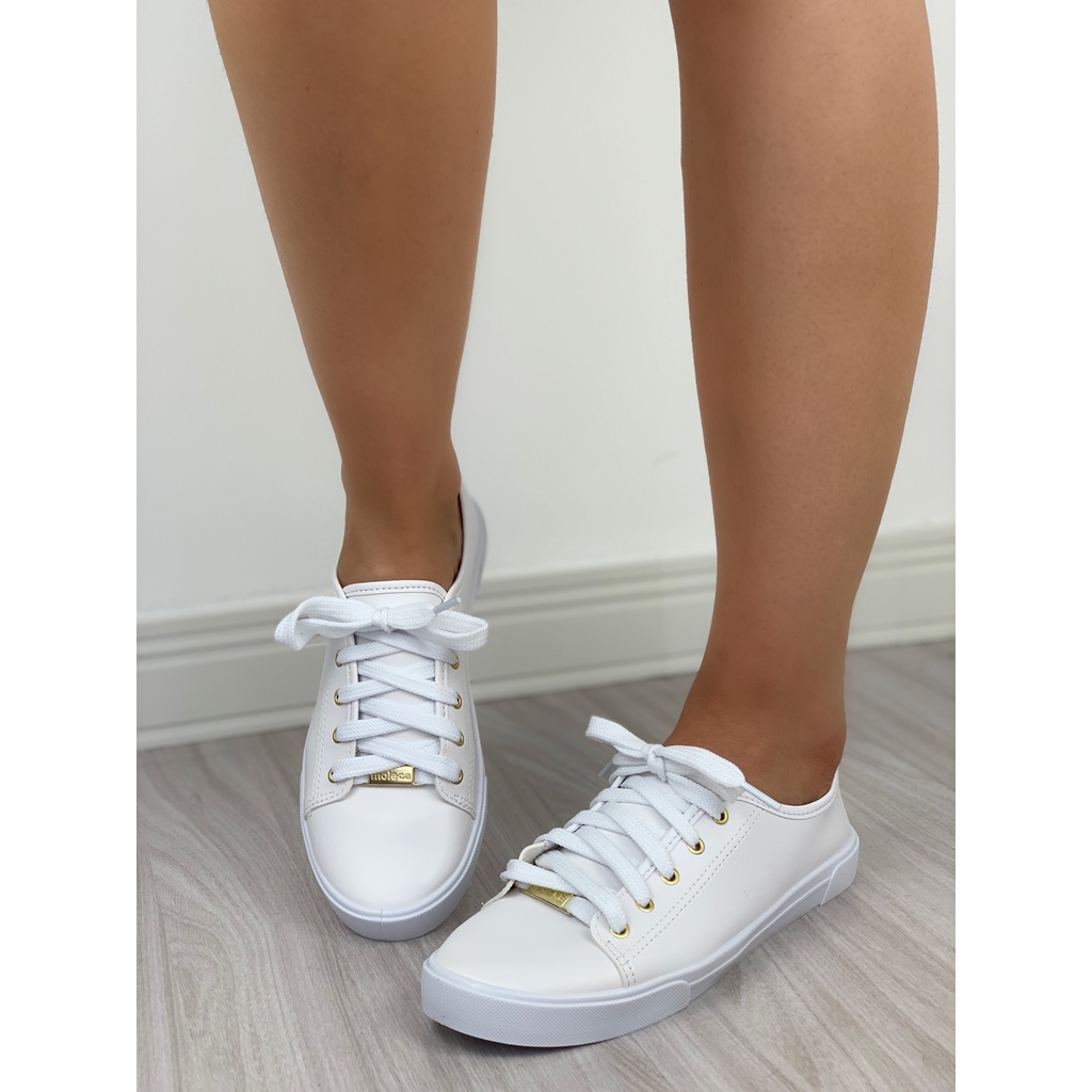 O Tênis Feminino Moleca é a combinação perfeita entre conforto, estilo e praticidade, tornando-se uma escolha indispensável para quem busca um calçado versátil para diversas ocasiões. Com um design moderno e elegante, ele se adapta a diferentes estilos, proporcionando sofisticação ao visual sem abrir mão do bem-estar dos pés. Confeccionado em material sintético de alta qualidade, garantindo resistência e um toque suave, além de facilitar a limpeza e conservação ao longo do tempo. O Tênis Moleca é produzido com materiais de excelente qualidade, se destacando pela durabilidade e acabamento impecável. O design minimalista e atemporal do modelo torna-o ideal para diferentes composições, desde produções casuais até as mais sofisticadas. O cabedal conta com detalhe refinado de costuras bem definidas, que proporcionam um charme extra. Além disso, o adorno metálico com o logo da marca, localizado na região do cadarço, adiciona um toque de exclusividade ao calçado. O fechamento é feito por cadarço de amarrar, permitindo uma regulagem precisa e segura para diferentes formatos de pé. Essa característica garante estabilidade durante o uso, proporcionando confiança ao caminhar e facilitando o calce no dia a dia. Pensando no máximo conforto, o interior do tênis é completamente forrado, proporcionando uma sensação de maciez a cada passo. Sua palmilha anatômica acolchoada se adapta à anatomia dos pés, oferecendo suporte adequado e minimizando impactos, ideal para uso prolongado sem incômodos. O modelo possui um salto discreto e embutido, garantindo leve elevação e postura adequada ao caminhar. Essa estrutura favorece o conforto durante o uso e adiciona um toque de elegância ao visual, sem comprometer a estabilidade. Para completar, o solado é confeccionado em PVC resistente e conta com frisos antiderrapantes, proporcionando segurança em diferentes tipos de superfícies. Essa característica assegura um caminhar firme e confiante, evitando escorregamentos e oferecendo maior durabilidade ao calçado. Com um equilíbrio perfeito entre funcionalidade e sofisticação, o Tênis Feminino Moleca é a escolha ideal para mulheres que valorizam conforto e estilo no dia a dia. ALTURA DO SALTO: 1,5cm