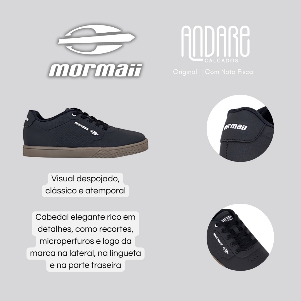 FORMA: Normal (Ver tabela de medidas) CABEDAL: Laminado sintético PALMILHA: Anatômica FECHAMENTO: Cadarço SOLADO: PVC ENVIO: Na caixa do fabricante O Tênis Masculino Mormaii é a escolha perfeita para quem busca estilo e conforto em todas as ocasiões. Com um design clássico e minimalista, ele se adapta com facilidade a diferentes produções, sendo um item indispensável no guarda-roupa de quem valoriza versatilidade, elegância e praticidade no dia a dia. Confeccionado em material laminado sintético de alta qualidade, o tênis Mormaii alia durabilidade e resistência a um acabamento impecável. O material utilizado não apenas proporciona uma aparência sofisticada, como também contribui para a leveza do calçado. O design do modelo é enriquecido por detalhes que fazem a diferença: o cabedal apresenta microperfuros que garantem um visual moderno e promovem melhor ventilação, além de recortes bem trabalhados que conferem um toque de estilo discreto. A identidade da marca é ressaltada com a aplicação da logo Mormaii na lingueta, na lateral e na parte traseira do calçado, reforçando sua autenticidade e cuidado com o acabamento. O fechamento é feito por meio de cadarço tradicional de amarrar, permitindo um ajuste personalizado e seguro ao formato dos pés. Essa configuração clássica proporciona um calce mais firme e confortável, garantindo estabilidade no caminhar e uma adaptação perfeita ao uso diário. Pensando no conforto, o Tênis Mormaii conta com palmilha anatômica extremamente macia, que oferece suporte adequado à planta dos pés, absorvendo impactos e proporcionando uma sensação agradável durante todo o tempo de uso. O interior do tênis é todo forrado, o que contribui para o conforto térmico e a respirabilidade, evitando desconfortos mesmo após longas horas de uso. Para completar, o solado é confeccionado em PVC resistente e apresenta frisos antiderrapantes, proporcionando aderência firme em diversos tipos de superfície. Essa característica garante mais segurança ao caminhar, além de aumentar a durabilidade do calçado, tornando-o ideal para acompanhar a rotina intensa e dinâmica do dia a dia. TABELA DE MEDIDAS Tamanho 38 - 26.5cm Tamanho 39 - 27cm Tamanho 40 - 28cm Tamanho 41 - 28.7cm Tamanho 42 - 29cm Tamanho 43 - 29.5cm Tamanho 44 - 30.9cm