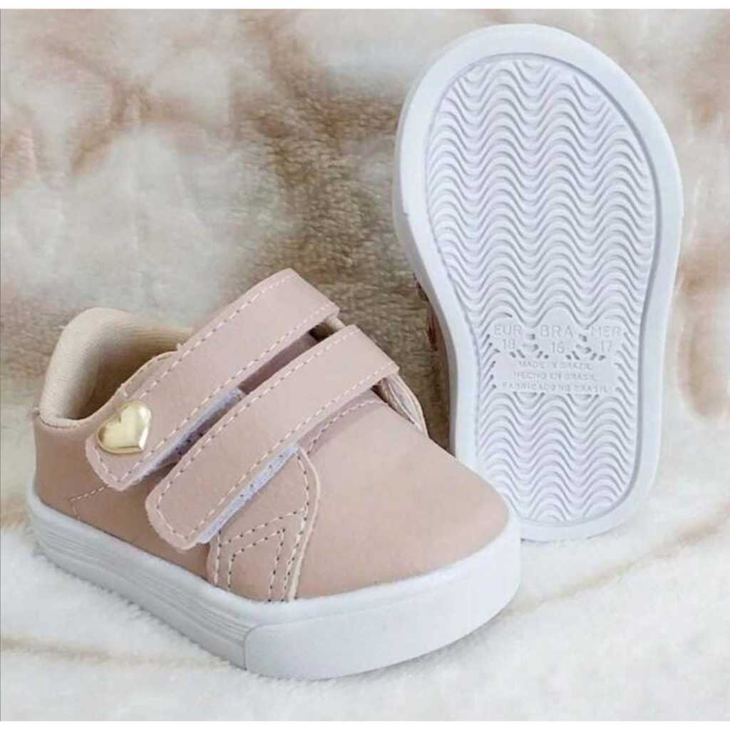 Tênis Nude ou Preto infantil com enfeite de coração, super meigo e delicado para suas princesas ficarem ainda mais lindas, super confortável e estiloso com sola emborrachada e fechamento fácil. Não fique fora dessa e garanta já o da sua princesa. tabela de medidas centímetros de palmilha: 16 - 10,5 cm 17 - 11 cm 18 - 12 cm 19 - 12,5 cm 20 - 13 cm 21 - 13,5 cm 22 - 14,5 cm Para saber qual o tamanho ira servir vc devera medir a sola do pé da criança desde o dedão até o final do calcanhar, usando uma régua ou fita métrica. OBS: A SHOPEE NÃO REALIZA TROCAS