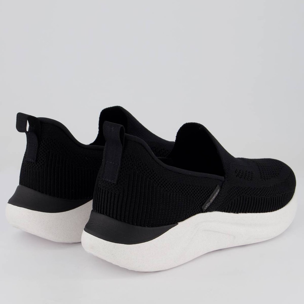 Composição cabedal (parte superior): Material têxtil respirável Palmilha: 100% EVA; moldada, forrada e removível Solado: Em EVA com alto nível de amortecimento Forro: Em têxtil com acolchoamento reforçado Entressola: EVA leve e macio Cor predominante: Preta Indicado para: Casual Lingueta: Integrada Gênero: Masculino Origem: Nacional Peso aproximado: 460g o par nº 40