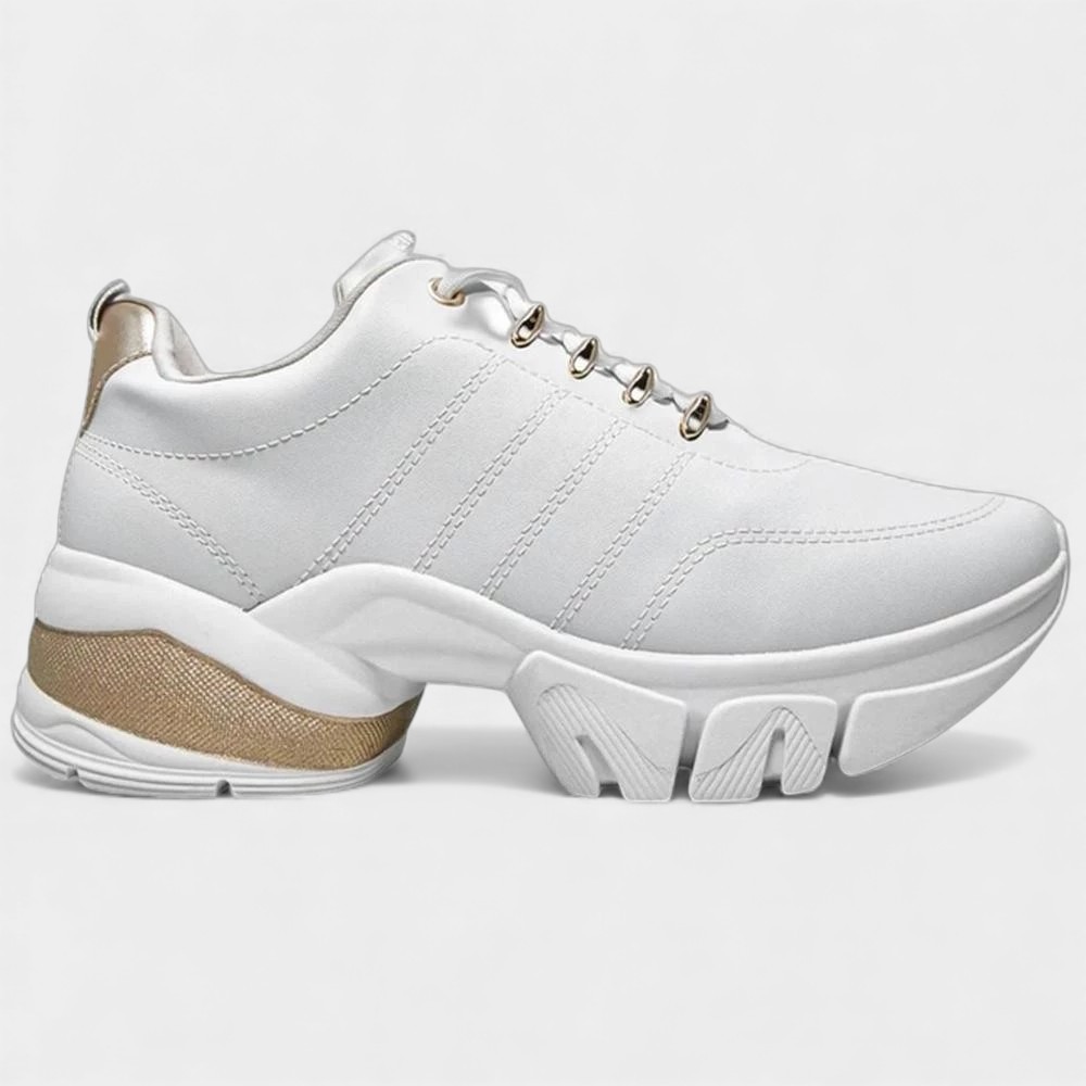 Apaixonada por Tênis Branco? O queridinho do universo da moda chegou para conquistar o seu coração, aposte no Tênis Ramarim Plataforma. Confeccionado em material resistente, tem solado emborrachado plataforma, palmilha macia e fechamento por cadarço ajustável. Trazendo design moderno e minimalista, exibe assinatura da marca na lateral e detalhes em dourado. O artigo conta com mini furos em locais estratégicos que garantem melhor respirabilidade aos pés. O bico arredondado e o salto alto de 6 cm garantem um visual feminino super estiloso. Dica: Combine com looks casuais ou festivos – short jeans, calça legging ou sua camiseta estampada favorita. Você merece as melhores escolhas. Garanta já o seu!