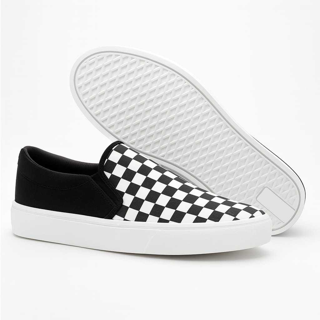 Tênis Sapatênis Iate Slip on Calce Fácil Hype Shoes - Xadrez Preto/Branco - Unissex