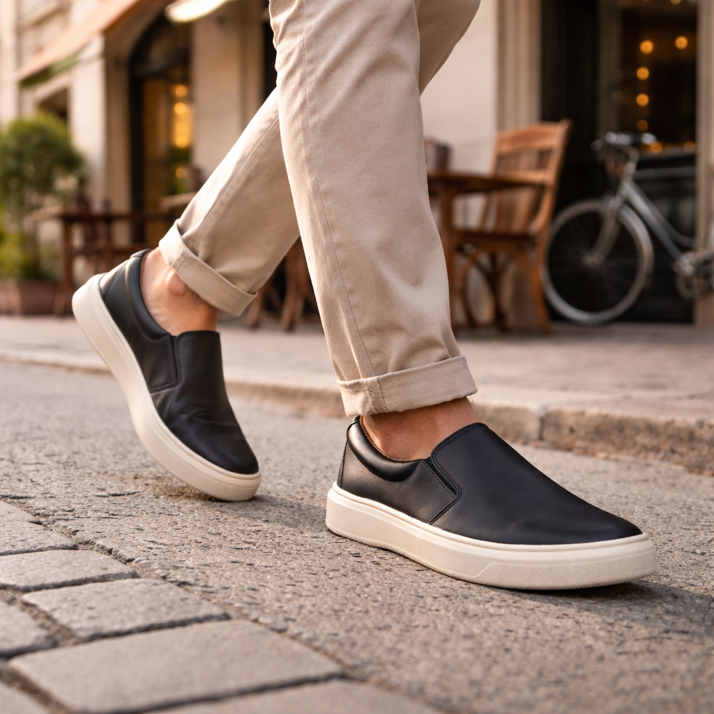 Ficha Técnica Marca: Ep Outlet Cabedal: Material sintético de alta qualidade Forração interna: Tecido com revestimento em couro legítimo Palmilha: EVA super macia revestida em couro Solado: TR (Thermo Rubber) leve e resistente Fechamento: Elásticos laterais para ajuste prático Tamanhos disponíveis: 37 ao 45 Design : Moderno e autêntico, com detalhes que destacam sua originalidade. Conforto : Ajuste elástico, forração em couro legítimo e palmilha em EVA macio para maior frescor e absorção do suor. Versatilidade : Ideal para compor looks casuais e descontraídos. Durabilidade : Solado em TR que garante leveza, resistência e conforto no uso diário. Praticidade : Elásticos para facilitar o calce e evitar maus odores ao longo do dia. Descrição O Slip On Masculino Realistt foi desenvolvido para homens que valorizam conforto real e visual alinhado ao cotidiano. Seu cabedal sintético oferece resistência e fácil manutenção, enquanto a forração com revestimento em couro legítimo contribui para maior frescor interno. A palmilha em EVA super macia garante absorção de impacto, e o solado em TR entrega estabilidade e durabilidade para acompanhar sua rotina.