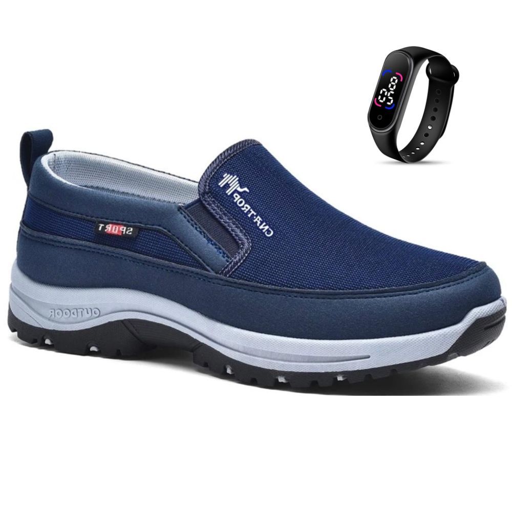 Tenis Sapatilha Mocassin Masculino Casual Adventure de Trilha Reforçado Com Solado Costurado Impermeável + Relogio
