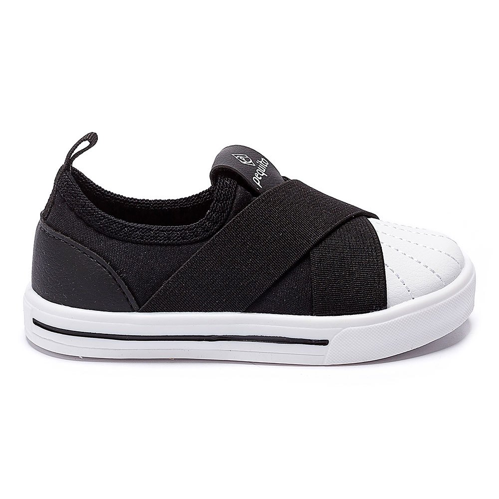 O Tênis Slip on Infantil Unissex Elástico Confort apresenta um design moderno e prático, ideal para o dia a dia das crianças. O cabedal, parte superior, possui elásticos em forma de X que proporcionam um ajuste confortável e seguro, sem a necessidade de amarrar o cadarço e auxilia a desenvolver a autonomia da criança ao calçá-lo. A ponteira branca adiciona um toque de estilo, enquanto o solado antiderrapante oferece segurança, mantendo a leveza necessária para os momentos das brincadeiras. Do que o produto é feito? Solado emborrachado antiderrapante, cabedal em Neoprene, elástico em X na parte superior, biqueira em napa vegana com bordado. Tamanhos: 20 ao 34. Cor: Preto. Como medir o pé da criança: Selecione com atenção a cor e tamanho correspondentes com a medida do pé da criança. É importante estar com as medidas certas para realizar a compra, evitando trocas e devoluções. Passo 1: Coloque o pé da criança sobre uma folha de papel, em uma superfície reta. Passo 2: Marque o calcanhar e a ponta do dedão com um risco. Use a régua ou fita métrica para medir a distância entre as duas marcas e descubra a medida em centímetros do pé. Lembre-se que a medição começa a partir do número 0. A seguir, observe na tabela de medidas o número que mais se aproxima da quantidade de centímetros do pé da criança. Tabela de Medidas Comparar com a tabela disponível. 20. 13.7 cm 21. 14.3 cm 22. 15 cm 23. 15.7 cm 24. 16.3 cm 25. 17 cm 26. 17.7 cm 27. 18.3 cm 28. 19 cm 29. 19.7 cm 30. 20.3 cm 31. 21 cm 32. 21.6 cm 33. 22.3 cm 34. 23 cm Tênis Elástico Infantil Pequito - Características Gerais do Produto: • Faixa Etária: Pré Infantil - até 6 anos (20 ao 27) • Gênero: Unisex • Material Externo: Neoprene • Cor: Preto • Solado: Emborrachado antiderrapante • Limpeza e Conservação: Lavagem manual. Não utilizar escova, detergentes ou solventes. Evitar molho e secar a sombra. • Tabela de Medidas: img/2024/07/produto/2951/tabela-de-medidas-atualizada-2024.jpg Acompanha o produto: • 1 par de tênis 1 caixa de papelão Garantia: • Garantia de Fábrica