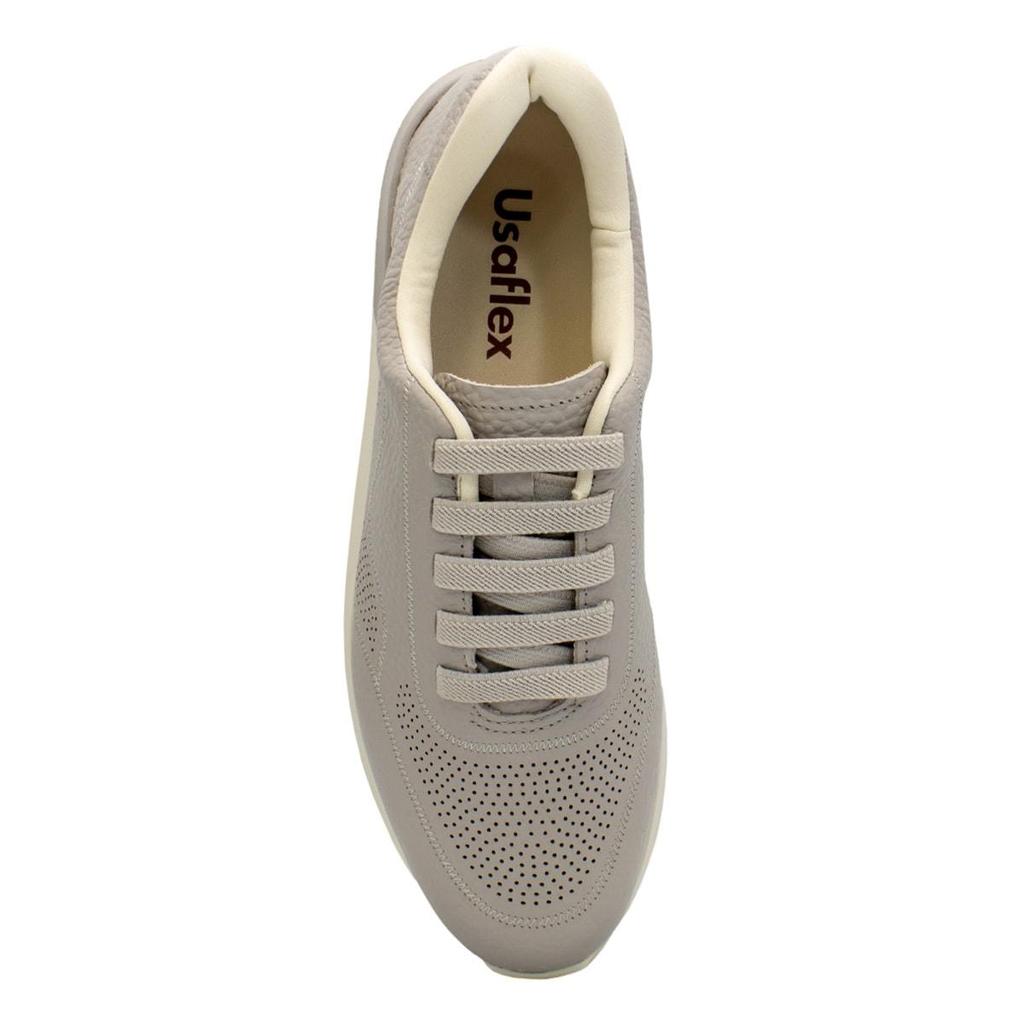 Tênis Usaflex Feminino em Couro Cadarço Elástico Casual AH1721