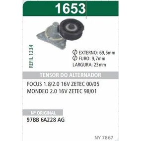 TENSOR DO ALTERNADOR FOCUS 1.8/2.0 16V ZETEC 00/05 MONDEO 2.0 16V ZETEC 98/01 DIMENSÕES: EXTERNO:69.5 mm FURO:9.7 mm LARGURA:23 mm NÚMERO ORIGINAL: 97BB6A228AG NÃO E O QUE ESTAVA PROCURANDO ENTRE EM CONTATO!