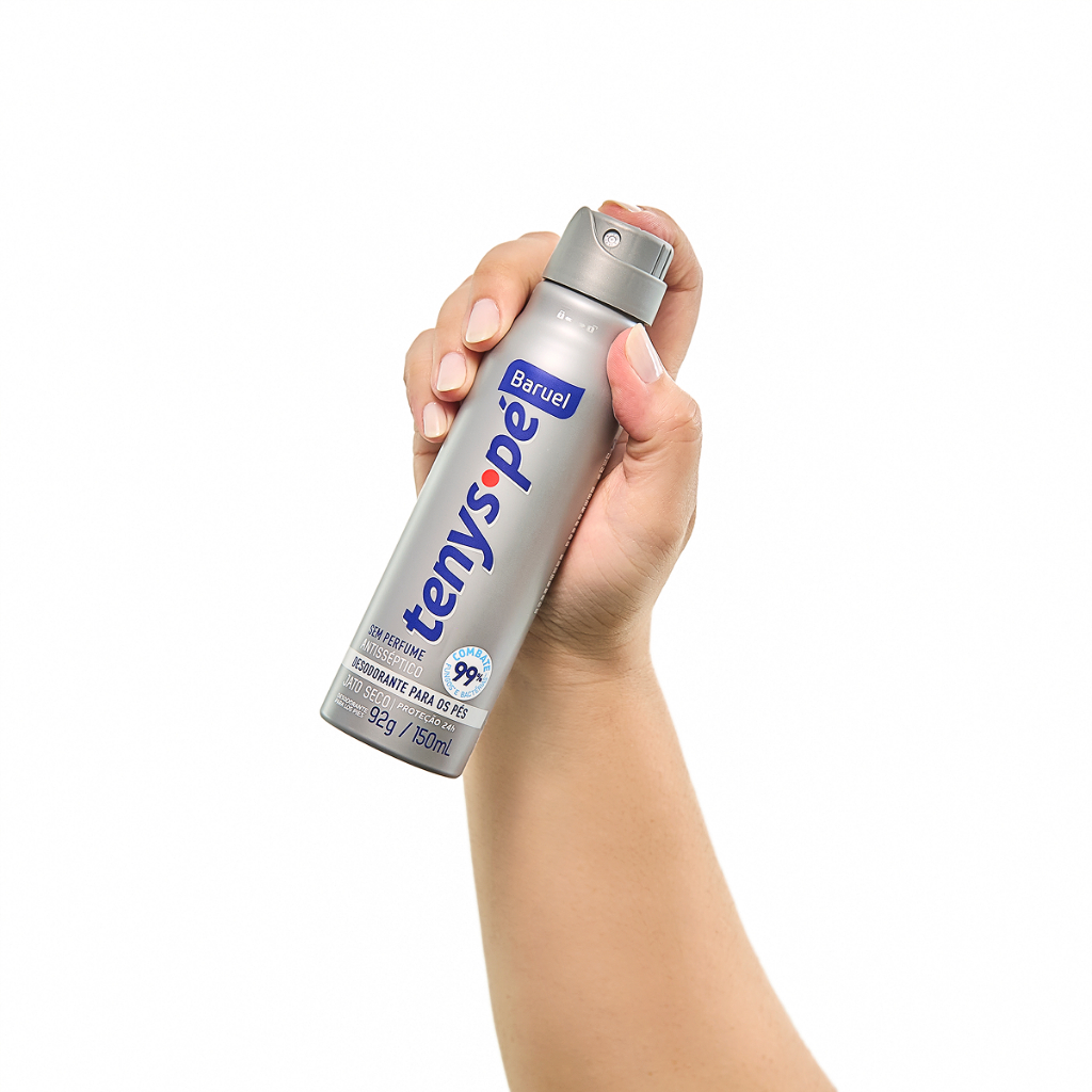Tenys Pé Baruel Jato Seco Sem Perfume 86g Principais Características: • Tecnologia Jato Seco, que garante rápida secagem e sensação de frescor imediata. • Fórmula sem perfume, ideal para peles sensíveis ou pessoas com intolerância a fragrâncias. • Ação antisséptica que combate os microrganismos causadores de odores. Benefícios: • Mantém os pés secos e protegidos por mais tempo. • Neutraliza o mau odor sem interferir em outros perfumes ou produtos utilizados. • Sensação de conforto e proteção ao longo do dia. Diferenciais do Produto: • Indicado para uso diário e para quem busca uma proteção eficaz e discreta. • Ideal para uso em ambientes corporativos, escolares ou esportivos. • Pode ser aplicado diretamente nos pés e dentro dos calçados. Especificações Técnicas: • Peso: 86g Instruções de Uso: - Agite antes de usar. - Aplique nos pés limpos e secos, a uma distância de aproximadamente 15 cm. - Também pode ser aplicado no interior dos calçados. Avisos e Precauções: • Uso externo. • Não aplicar sobre a pele lesionada ou irritada. • Produto inflamável. Manter longe de fogo ou superfícies aquecidas. • Evite a inalação direta do spray. • Manter fora do alcance de crianças. O que está incluso? - 1 desodorante para os pés Tenys Pé Baruel Jato Seco Sem Perfume 86g ---- DÚVIDAS FREQUENTES ---- Os produtos são originais? Sim. Todos os nossos produtos são originais. Emitem nota fiscal? Sim. Emitimos nota fiscal para todos os pedidos.