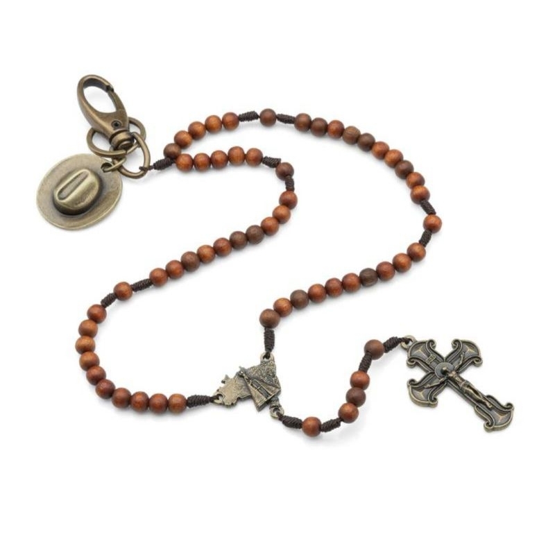 Terço Agro Nossa Senhora Aparecida Mad 8mm / Chaveiro Agro Nossa Senhora Aparecida