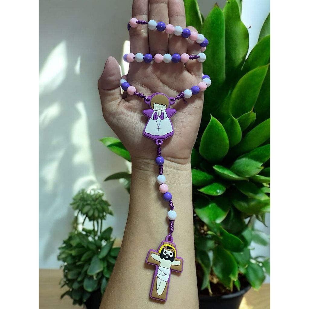 Terço Católico infantil roxo emborrachado do anjo da guarda 40 cm