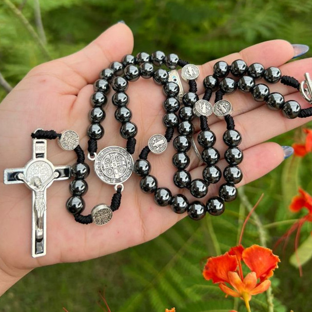 Terço Colar São Bento Preto Hematita