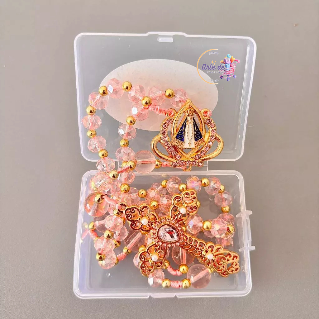 Terço Cristal Nossa Senhora Aparecida + Caixinha - Lançamento