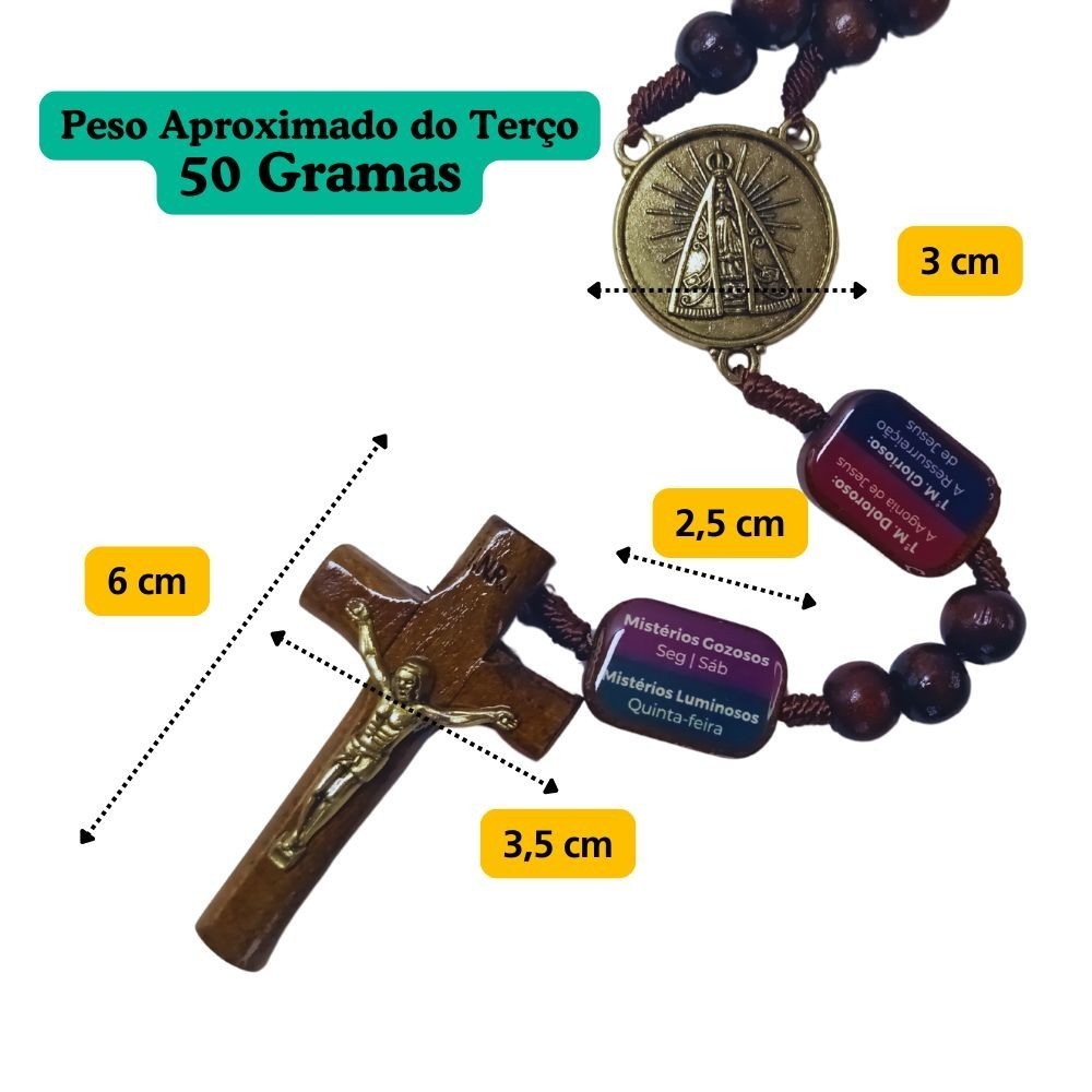 Terço Da Contemplação Dos Mistérios Madeira Nossa Senhora Aparecida Kit com 2 Unidades