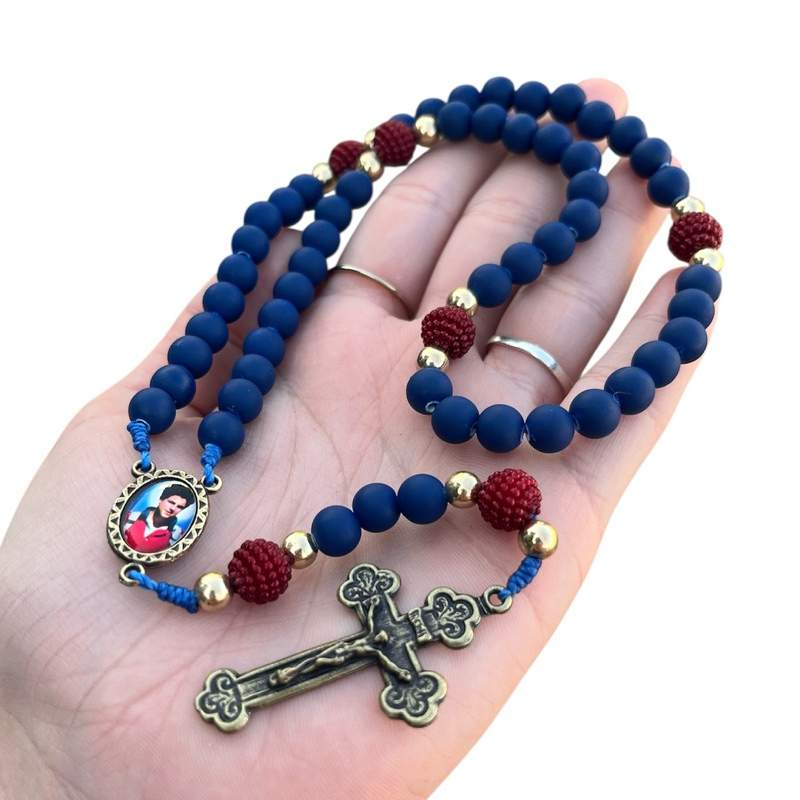 Terço de Carlo Acutis 💙 Peça delicada e cheia de fé, com design sofisticado e riqueza de detalhes! ✨ Descrição do Produto: Terço dedicado a Carlo Acutis emborrachado azul marinho e amora vinho no Pai Nosso. Medalha central resinada e cruz em metal com acabamento bronze envelhecido. Acabamento fino, peça leve, resistente e macio. 🔹 Tamanho: Aprox. 30 cm 🔹 Ideal para: Oração, devoção diária, proteção ou presente especial ATENÇÃO: Terço não é feito para pescoço. 🙏 Um símbolo de fé e proteção para levar sempre com você. **ENVIO** Nossas Peças são super bem embaladas para manter a qualidade da peça e do envio até a sua casa! Estamos localizados em Aparecida do norte e atuamos no mercado há mais de 5 anos, trabalhando com diversos produtos religiosos! ENVIAMOS PARA TODO BRASIL!