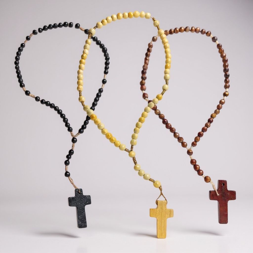 Terço de mão confeccionado em madeira marrom, medindo 24 cm, ideal para oração diária e momentos de devoção. Perfeito para uso pessoal ou como lembrancinha religiosa em batizados, crismas, primeiras comunhões e outros eventos católicos.