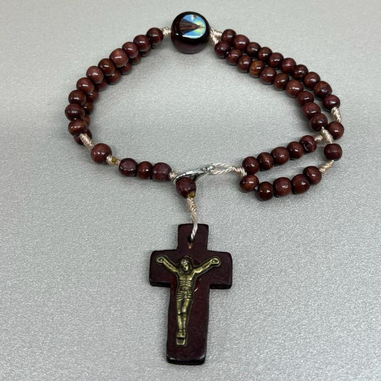 pulseira terço de pulso nossa senhora aparecida, são Bento, são Jorge em madeira com crucifixo fino acabamento bonito, único e durável ,terço super leve não incomoda o pulso. perfeito para presentear alguém querido ou como uso próprio Medidas: 4mm com crucifixo em metal comprimento: 25cm crucifixo: 2,5cm pulso: ajustável com fecho até 21cm produto em estoque na nossa loja Qualquer dúvida nos chame no chat , será um prazer te atender.