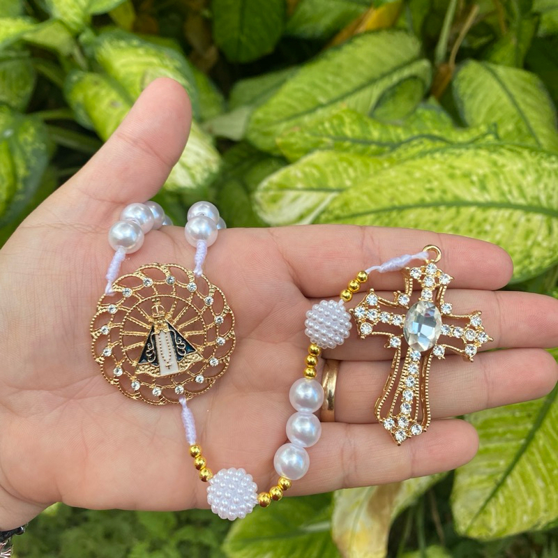 Terço de noiva de pérola com dourado. Produto personalizado com o nome do casal. APÓS A FINALIZAÇÃO DA COMPRA INFORMAR O NOME QUE DESEJA COLOCAR NO TERÇO. CASO ISSO NÃO ACONTEÇA IREMOS ENVIAR SEM A PERSONALIZAÇÃO. MEDIDAS : -Comprimento : 50 cm (aproximadamente) - Cruxifixo : 7 cm - Medalha : 5 cm GARANTIA : Enviamos seu produto bem embalado em plástico bolha. Todos os produtos tem a garantia do fabricante de troca / devolução dentro de 30 dias após o recebimento. OBS : Compra 100% segura e protegida pela garantia Shopee. Receba seu produto ou seu dinheiro de volta ! QUEM SOMOS NÓS : Somos uma loja de produtos religiosos onde buscamos dar 100 % da nossa atenção para você e sua família ! Sempre com muito amor e carinho. QUALQUER DÚVIDA ESTAMOS A DISPOSIÇÃO PELO CAMPO DE PERGUNTAS AO VENDEDOR