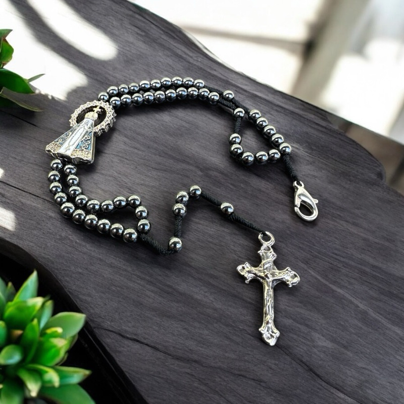 Terço De Pulso Pedra Hematita Medalha De São Bento NOVIDADE Pulseira Religiosa para Proteção