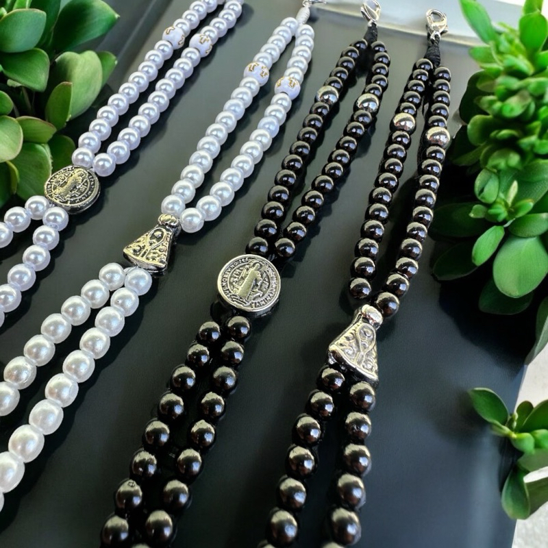 Terço De Pulso Pérola São Bento NOVIDADE Pulseira Religiosa