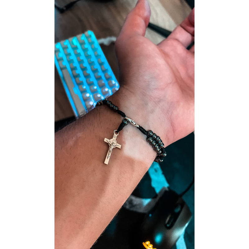 Terço de Pulso São Bento Hematita - Pulseira Modelo Premium