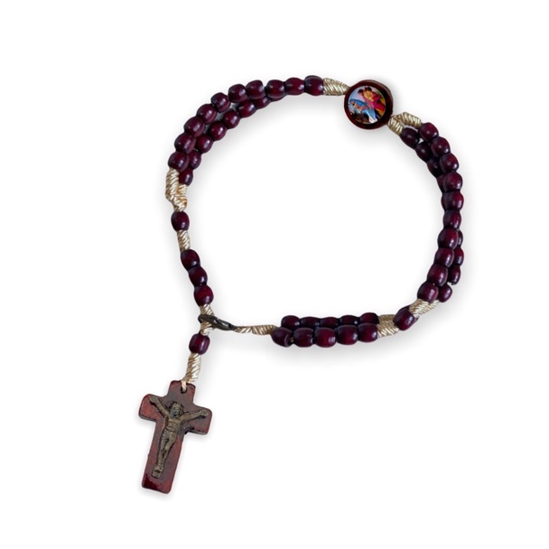 Terço De Pulso São Bento Madeira Medalha Metal 24cm
