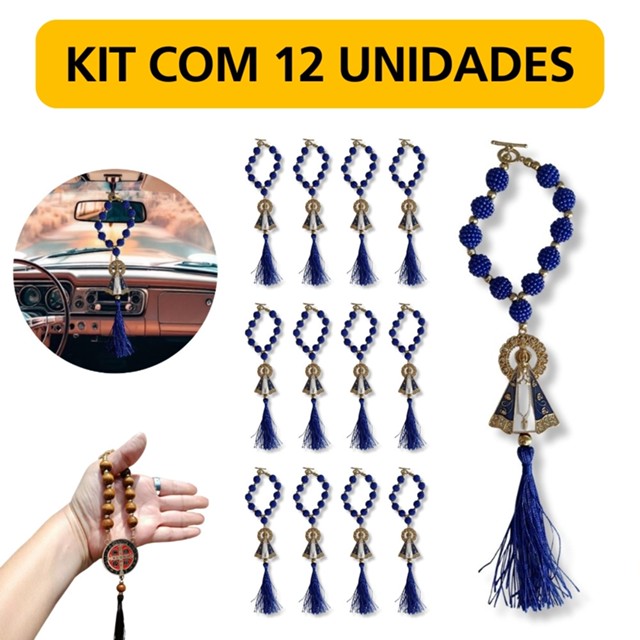 Terço Dezena Para Carro Retrovisor Pacote Aparecida São Bento 12 Unidades