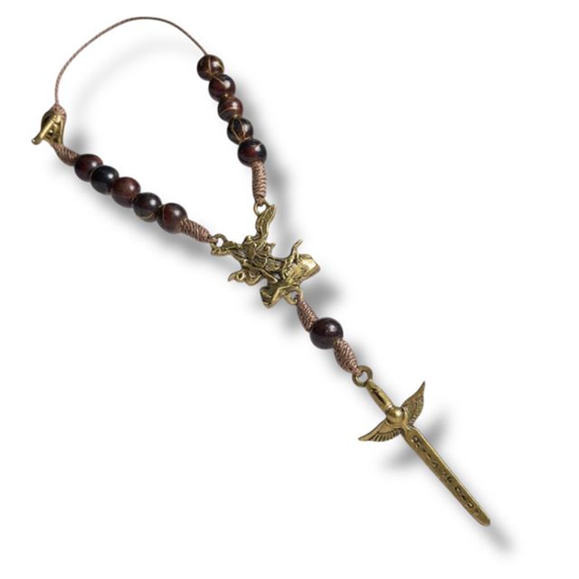 Dezena com contas em acabamento especial e medalha de São Miguel Arcanjo com a espada, símbolo de proteção e vitória contra o mal. Ideal para usar no retrovisor do carro, carregar consigo no dia a dia ou oferecer como lembrança de fé. Uma peça que une devoção, força espiritual e beleza em cada detalhe.
