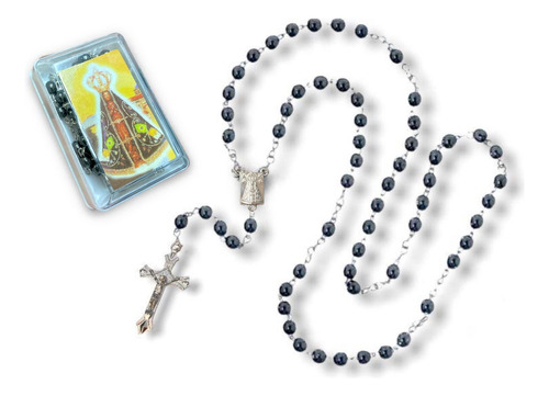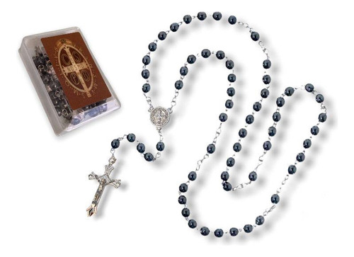 Terço Hematita São Bento Medalha Com Caixa 49cm