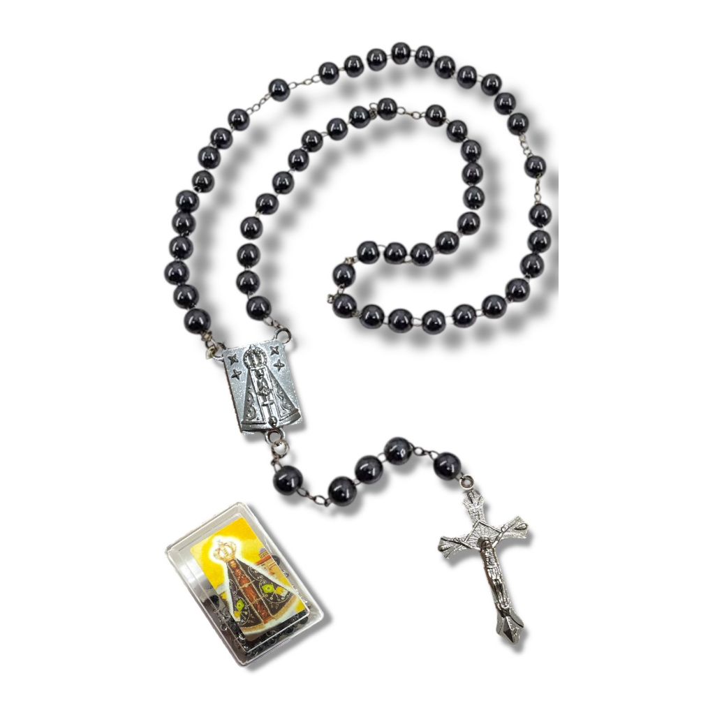 Terço Hematita São Bento Medalha Com Caixa 49cm