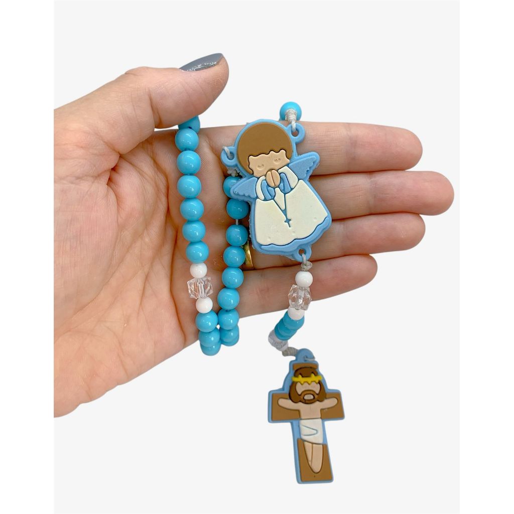Terço Infantil Azul Personalizado com Nome Criança Batizado Comunhão