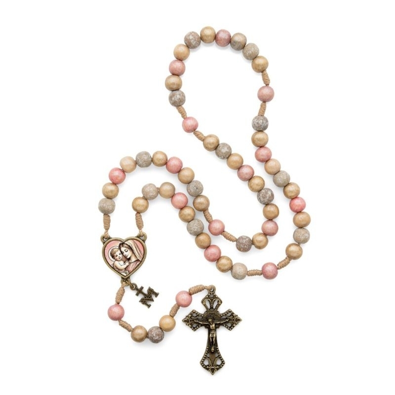 Terço Mãe de Todas as Mães Mariano Nossa Senhora em Madeira Imbuia Color Rosa