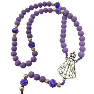 Terço Nossa Senhora Aparecida Roxo/ Cruz e metal bronze