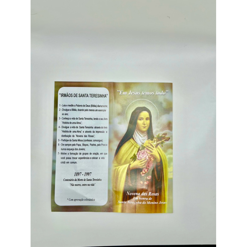 Terço Novena Santa Terezinha 25cm Folheto Explicativo Contas Esmaltada Rosa Medalha Resinada Devoçao
