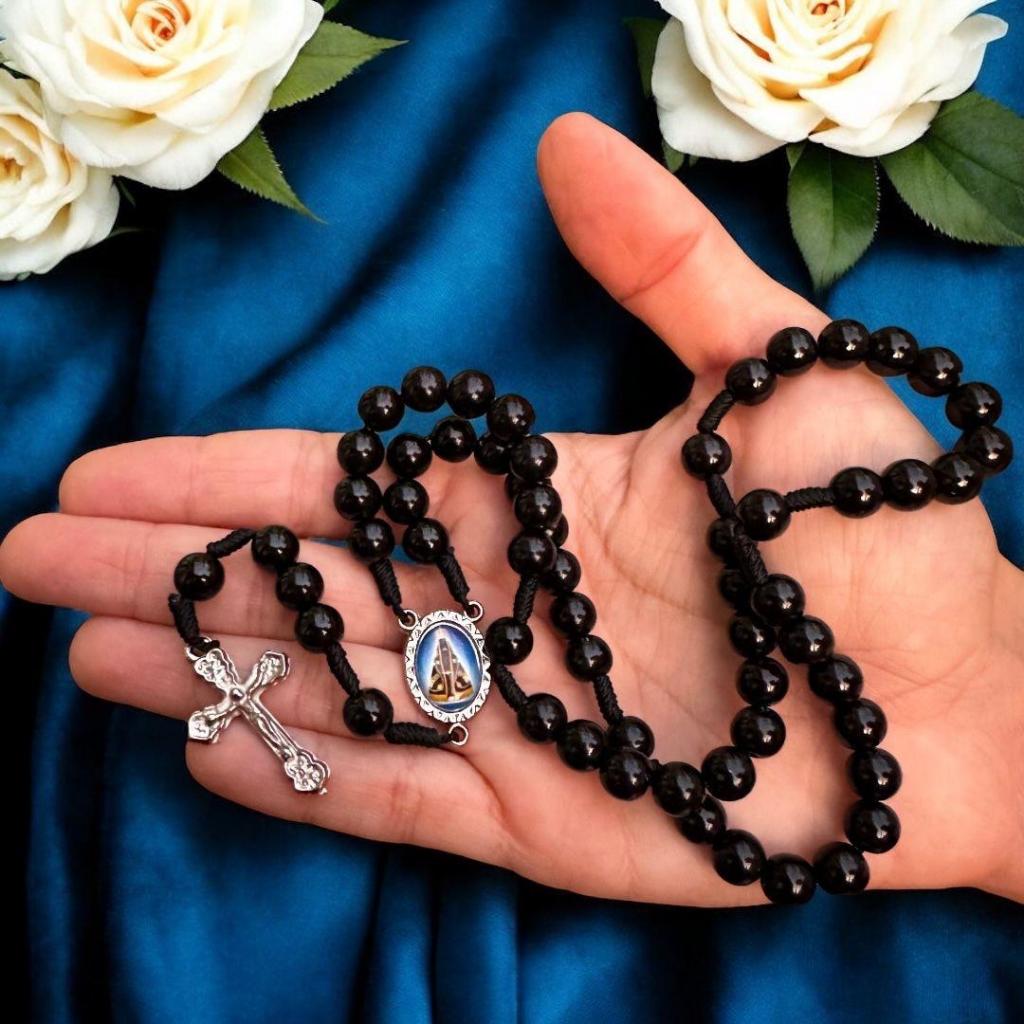 Terço Pérola Madeira de Nossa Senhora Aparecida Medalha Resinada