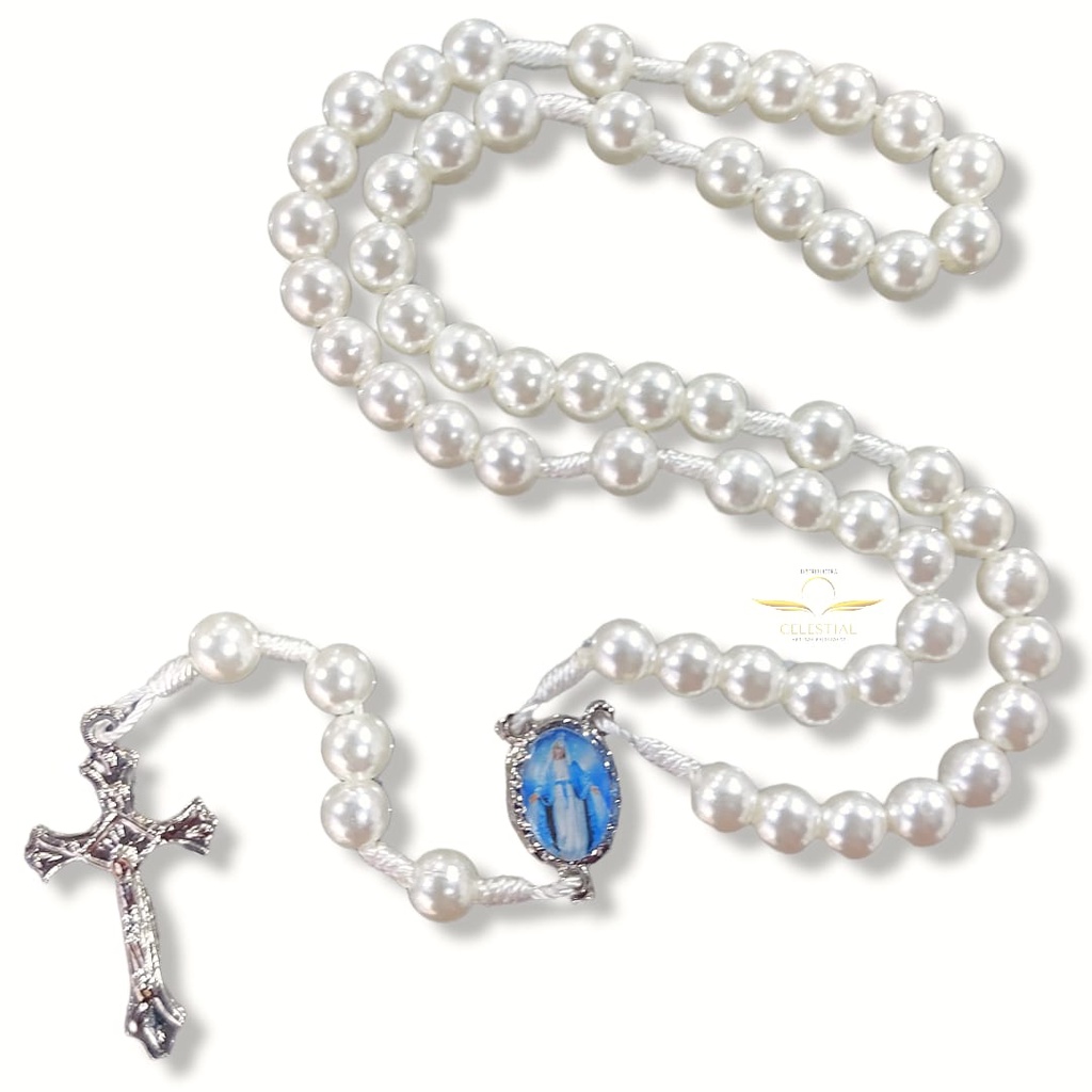 Terço de cordão com contas em pérola, medalha de Nossa Senhora Das Graças resinada e crucifixo em metal. Linda peça para se usar no dia a dia no momento de oração ou presentear algum amigo querido. MEDIDAS APROXIMADAS Comprimento: 35cm Contas: 8mm Nosso foco é atender a todos da melhor forma e com total satisfação! *Informações de Envio* Todos nossos produtos são enviados por caixas ou embalagens lacradas, embrulhamos com plástico folha e papel, todo cuidado para chegar o produto como esperado. *Garantia* Cobrimos garantia de todos nossos produtos quando se trata de defeitos de fabricação. *Compra e Envio* Assim que recebido a informação de compra, nós realizamos a postagem do produto em 24h úteis, temos a pronta entrega. Para qualquer e eventual dúvida, entre em contato conosco através das perguntas aqui na plataforma, estaremos a sua disposição!