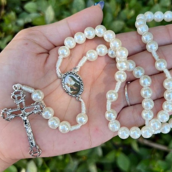 Terço Santa Rita Perola Branca LINDO