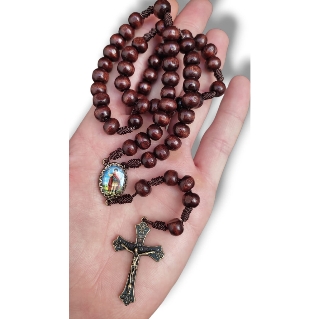 Terço Santo Expedito, Terço de Madeira Santo Expedito , Medalha Resinada e Crucifixo em Metal