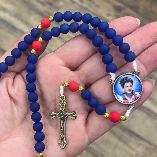 Terço São Carlo Acutis Emborrachado/ Medalha resinda/ Cruz em Metal Bronze